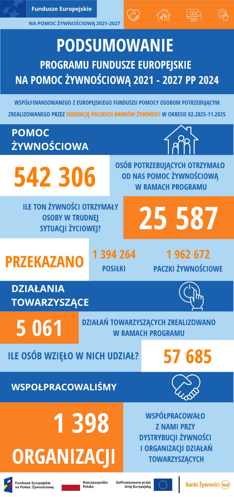 - Organizacja i koordynacja sieci dystrybucji pomocy żywnościowej składającej się z organizacji partnerskich regionalnych i lokalnych;